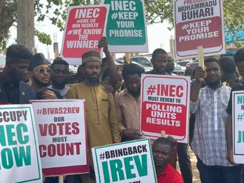 The protesters who camped at Emeka Anyaoku street, very close to the ICC, while expressing their dissatisfaction over the failure of the commission to upload election results on its portal since Saturday, despite its promise that the procedure would form a critical part of the electoral process, insisted the process had been compromised.